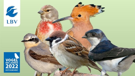 Diese fünf Kandidaten gehen für die vom 06.10. bis 18.11.2021 stattfindende Wahl „Vogel des Jahres 2022“ ins Rennen: