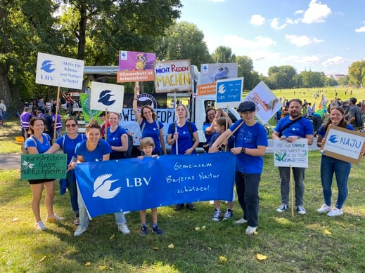 Am 15.09. gingen wieder zahlreiche LBVler unter dem Motto Gemeinsam für Klimaschutz und Artenschutz im Rahmen des Globalen Klimastreiks auf die Straße! Klimakrise und Artensterben hängen eng zusammen. Der LBV kooperiert deshalb seit langem mit Fridays for Future.