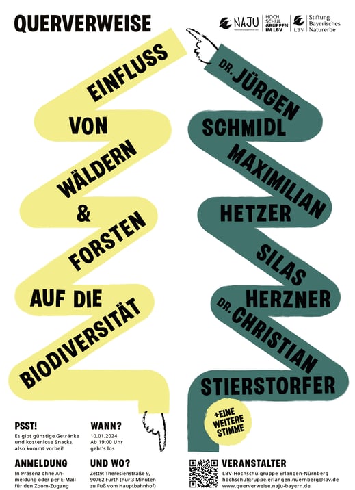 An diesem Abend diskutieren Experten des LBV, der LBV-Hochschulgruppe Erlangen-Nürnberg, der Friedrich-Alexander-Universität (FAU) und des Bund Deutscher Forstleute (BDF) über den Einfluss von Forsten und Wälder auf die Biodiversität aus unterschiedlichen Sichtweisen.
