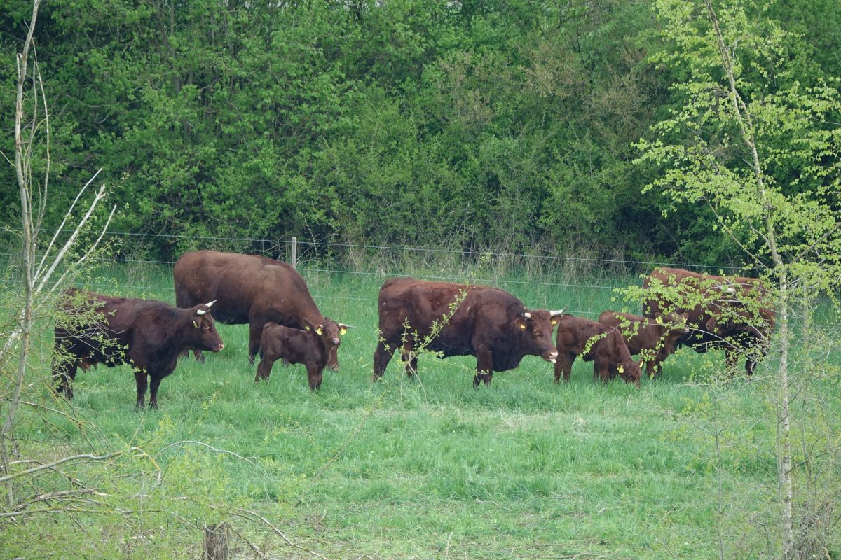 Seit diesem Jahr übernehmen vier wundervolle Kühe der gefährdeten Rinderrasse "Rotes Höhenvieh" die Landschaftspflege der nun um etliche Obstbäume erweiterten Streuobstwiese.