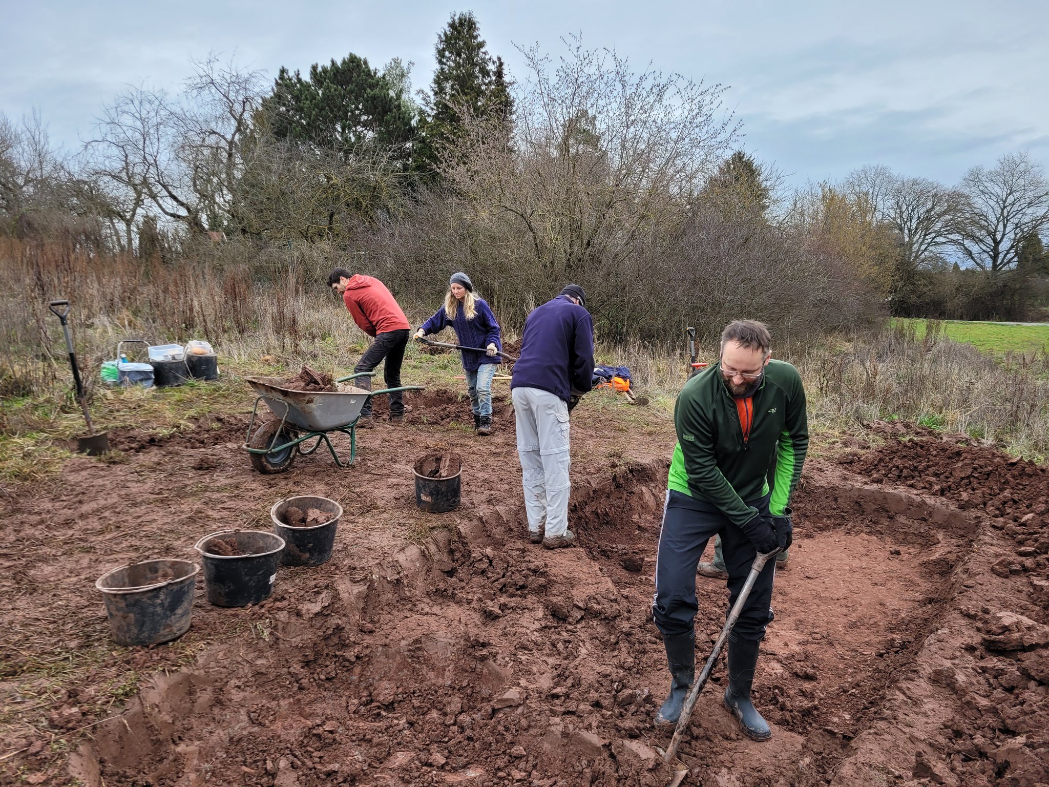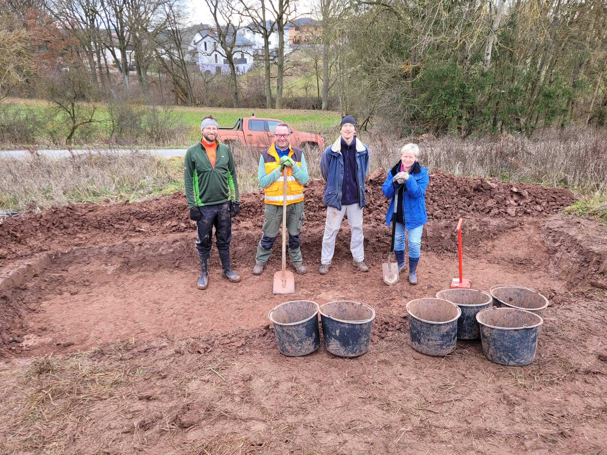 Auf unserer Schutzgebietsfläche bei Unterschlauerbach (Landkreis Fürth) haben wir gemeinsam mit Jugendlichen der NAJU Naturjugendgruppe Tümpel angelegt.