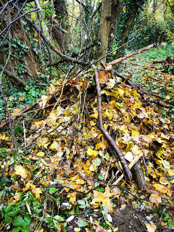 Ein mit Ästen bedeckter Laubhaufen oder aufgehäuftes Reisig, möglichst windgeschützt, trocken und schattig gelegen, sind beliebt als Schlafplätze. Laubhaufen unter einer Hecke können den Igeln ebenso als Quartier dienen wie Blatthaufen, die sich in Hohlräumen, etwa unter Gartenhäuschen, angesammelt haben.