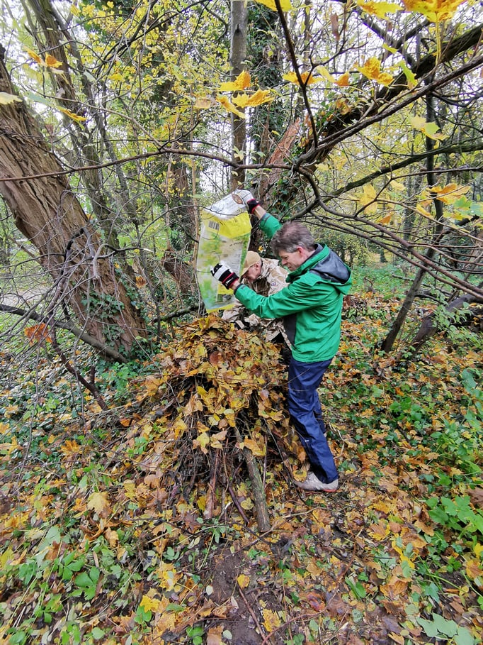 Am Samstag den 11. November 2023 errichteten Ehrenamtliche der LBV Kreisgruppe Fürth zwei Laubhaufen für Igel, Dank der freundlichen Genehmigung des Grünflächenamtes, im Fürther Stadtgebiet. Sie bieten Schutz für den Winterschlaf, den die Igel mit dauerhaft um den Gefrierpunkt liegenden Temperaturen, beginnen. Vorher sind die Igel noch auf Nahrungssuche, um sich den nötigen Fettvorrat für diese lange zeit anzufressen.