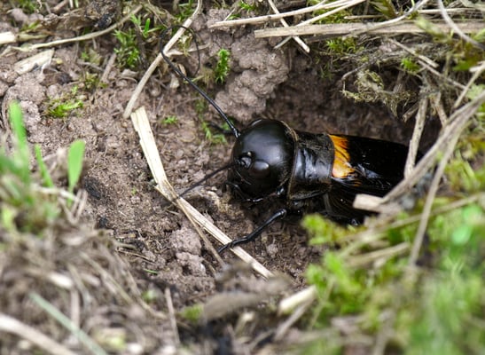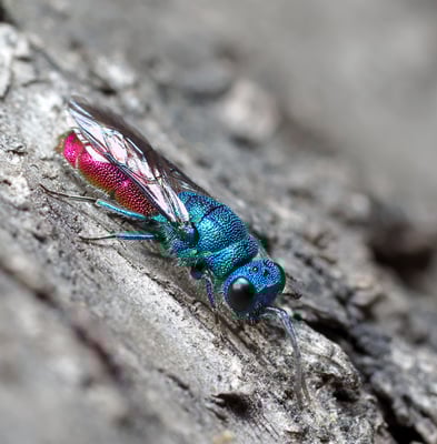 Das LBV-Schutzgebiet Unterschlauersbach ist Heimat zahlreicher Insekten - wie der Goldwespe. Eine der Zielarten auf der Fläche ist die Gelbbauchunke. Rechts die Zauneidechse. (Fotos: Richard Fischer, LBV)