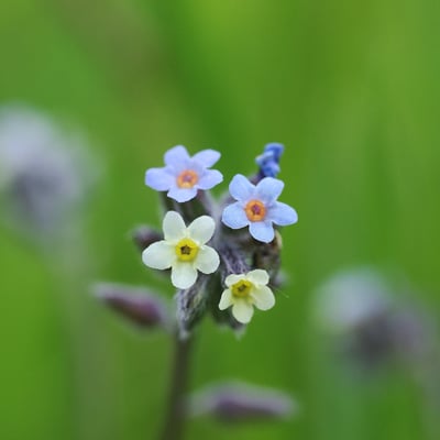 Der artenreichen Mischwald in Dipoldsberg beheimatet unter Anderem die seltene Bechsteinfledermaus, Feldhasen, Feldgrillen, Rotklee- Bläulinge und Waldkauze. Außerdem eine wertvolle Streuobstwiese und das bunte Vergissmeinnicht. (Fotos: Richard Fischer, LBV)