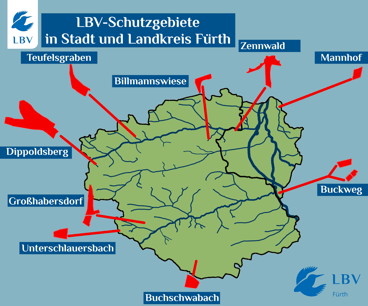 Der Erwerb von Grundstücken ist eine der erfolgreichsten Maßnahmen, um Lebensräume dauerhaft zu schützen. Der LBV Fürth kümmert sich um neun besondere Grundstücke mit einer Gesamtfläche von über 180.000 m², darunter auch typisch fränkische Kulturlandschaft wie Streuobstflächen oder ein Weihergebiet. Auf unseren LBV-Schutzgebieten optimieren wir den Lebensraum zum Beispiel für Laubfrosch, Wendehals und Mopsfledermaus.